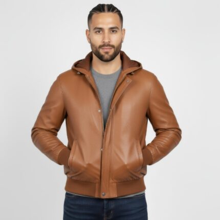 Men’s Real Leather Hooded Bomber Jacket