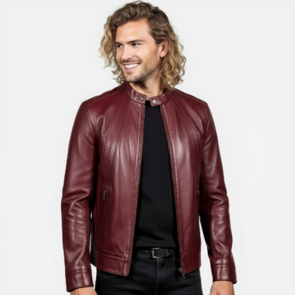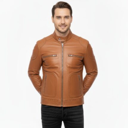 Men’s Real Leather Cafe Racer Jacket