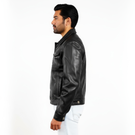 A heritage trucker reimagined in premium leather: clean lines, structured pockets, and a sharp collar meet precise tailoring for a do everything layer that reads rugged yet refined. Crafted from full-grain lambskin, sourced from the top 5% leather selection worldwide for durability and a rich hand.