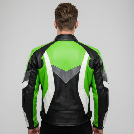 Ride with confidence and style in this professional biker leather sports outfit by American Leather Jackets, designed for riders who demand high performance and superior protection. Showcasing a distinctive black and green color combination, this racing suit delivers a bold, aggressive look on the road or track.