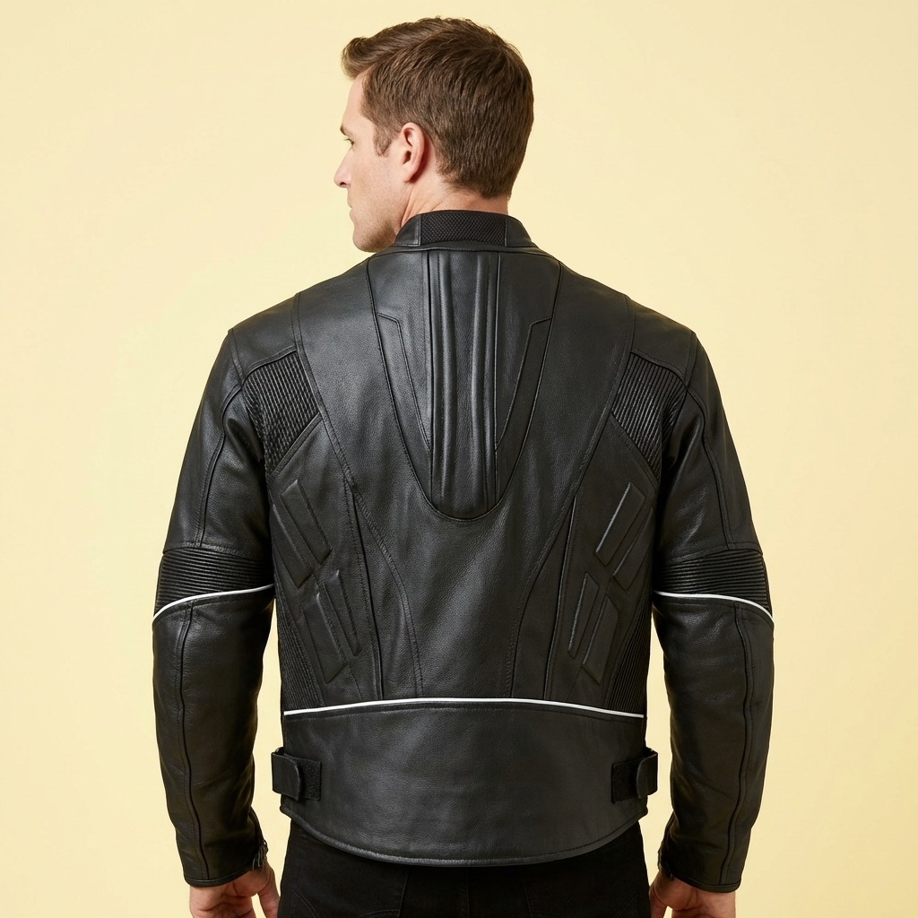 Crafted from high-quality top-grain cowhide leather with a thickness of 1.3mm–1.5mm, this motorcycle leather jacket offers excellent abrasion resistance, durability, and long-lasting comfort. The perforated leather panels on the upper section improve airflow, providing breathability while maintaining warmth and protection.