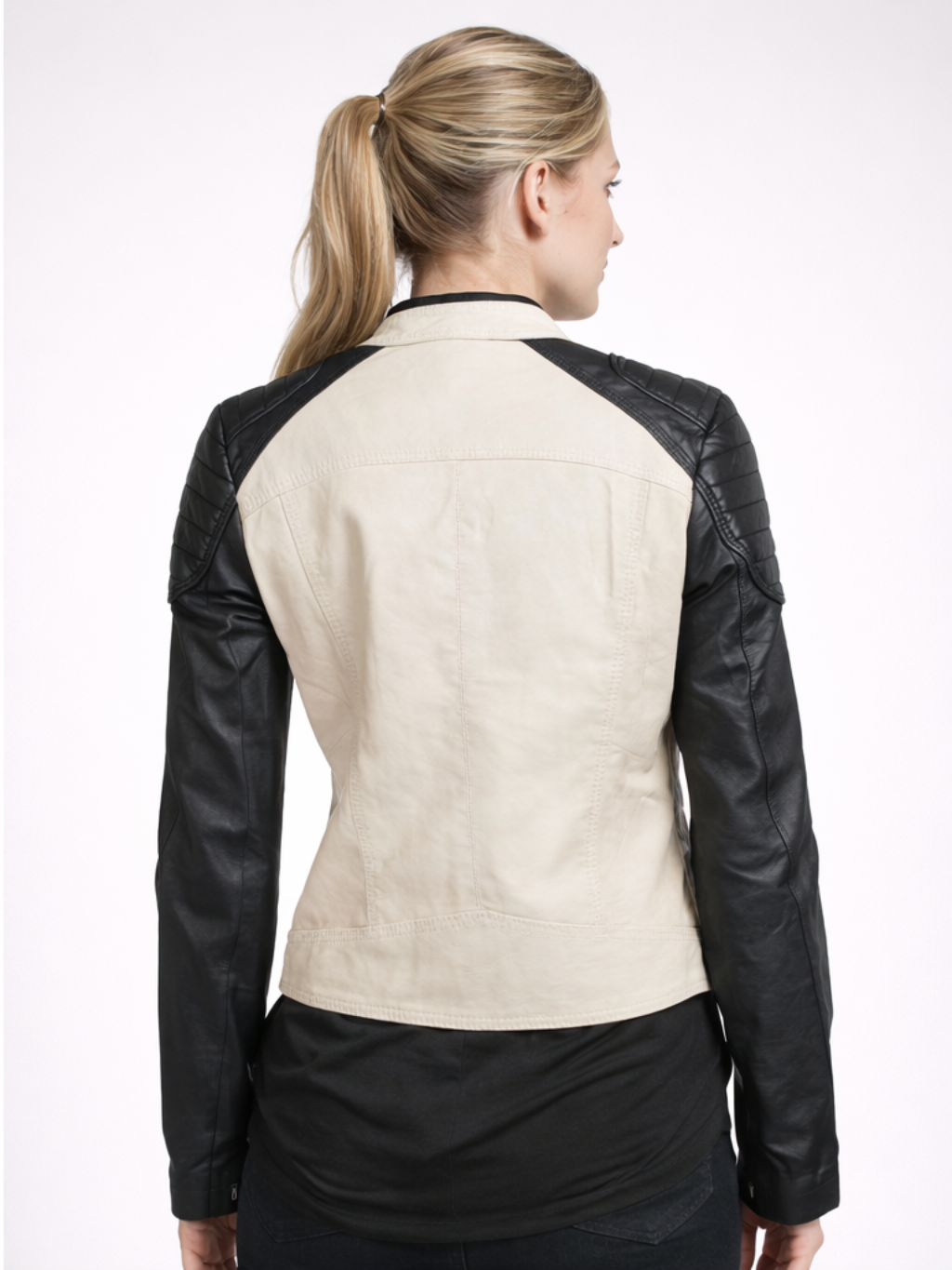 Black Arm White Leather Women Biker Jacket