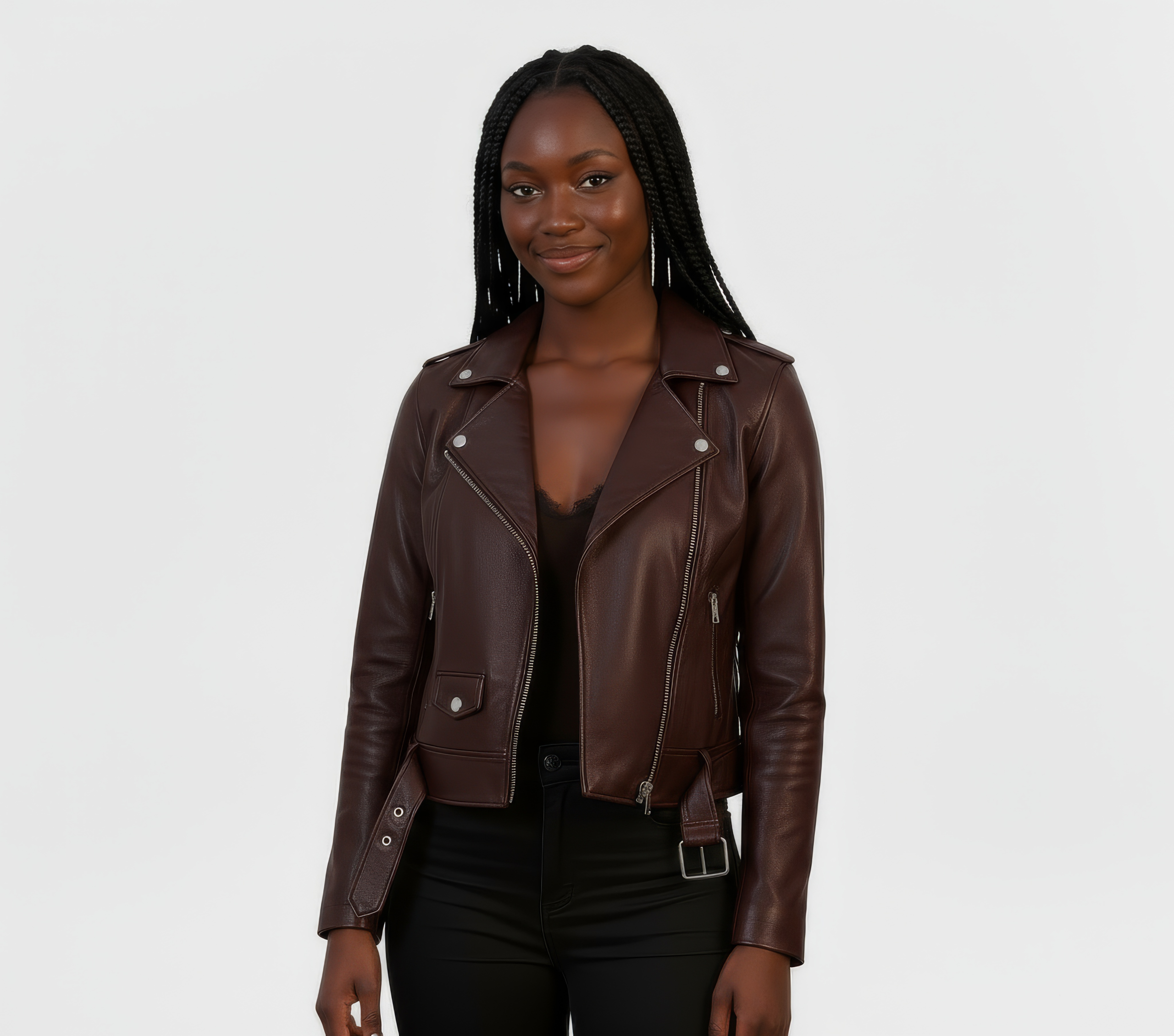 A clean, modern cafe racer cut with subtle moto cues and an everyday polished finish made in soft, full-grain lambskin(the top 5% of hides worldwide).
