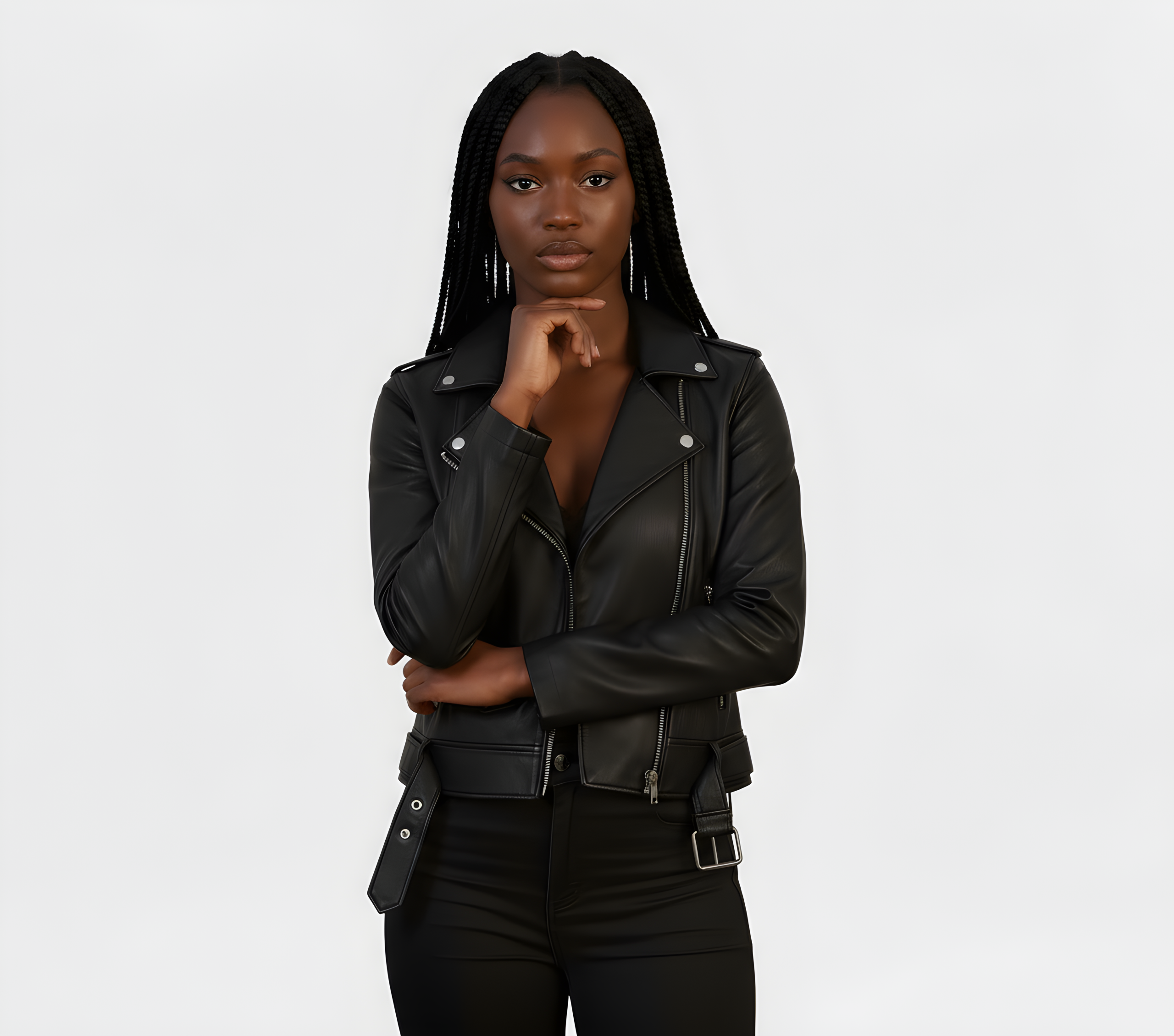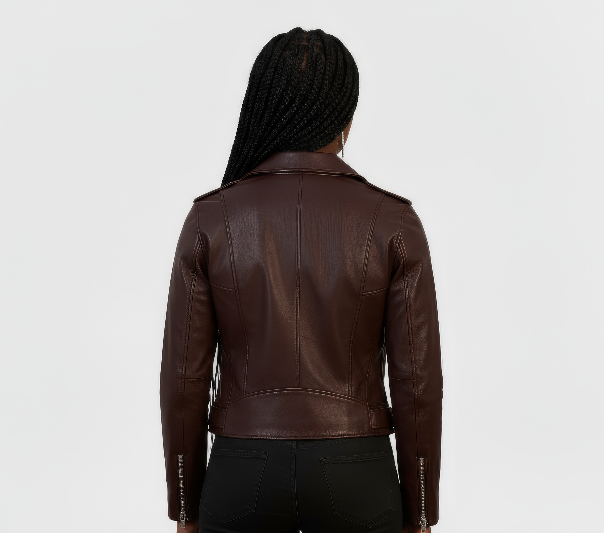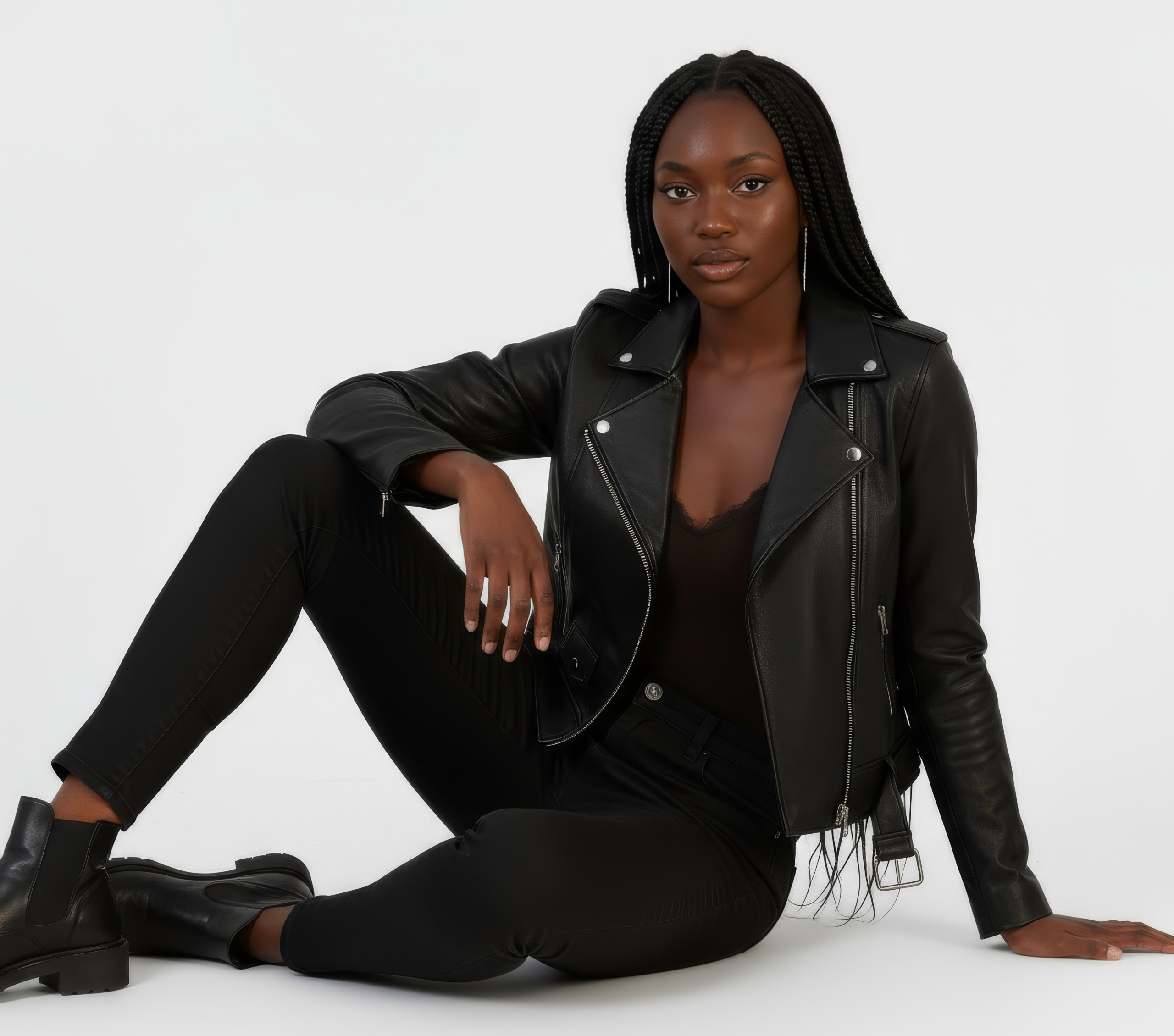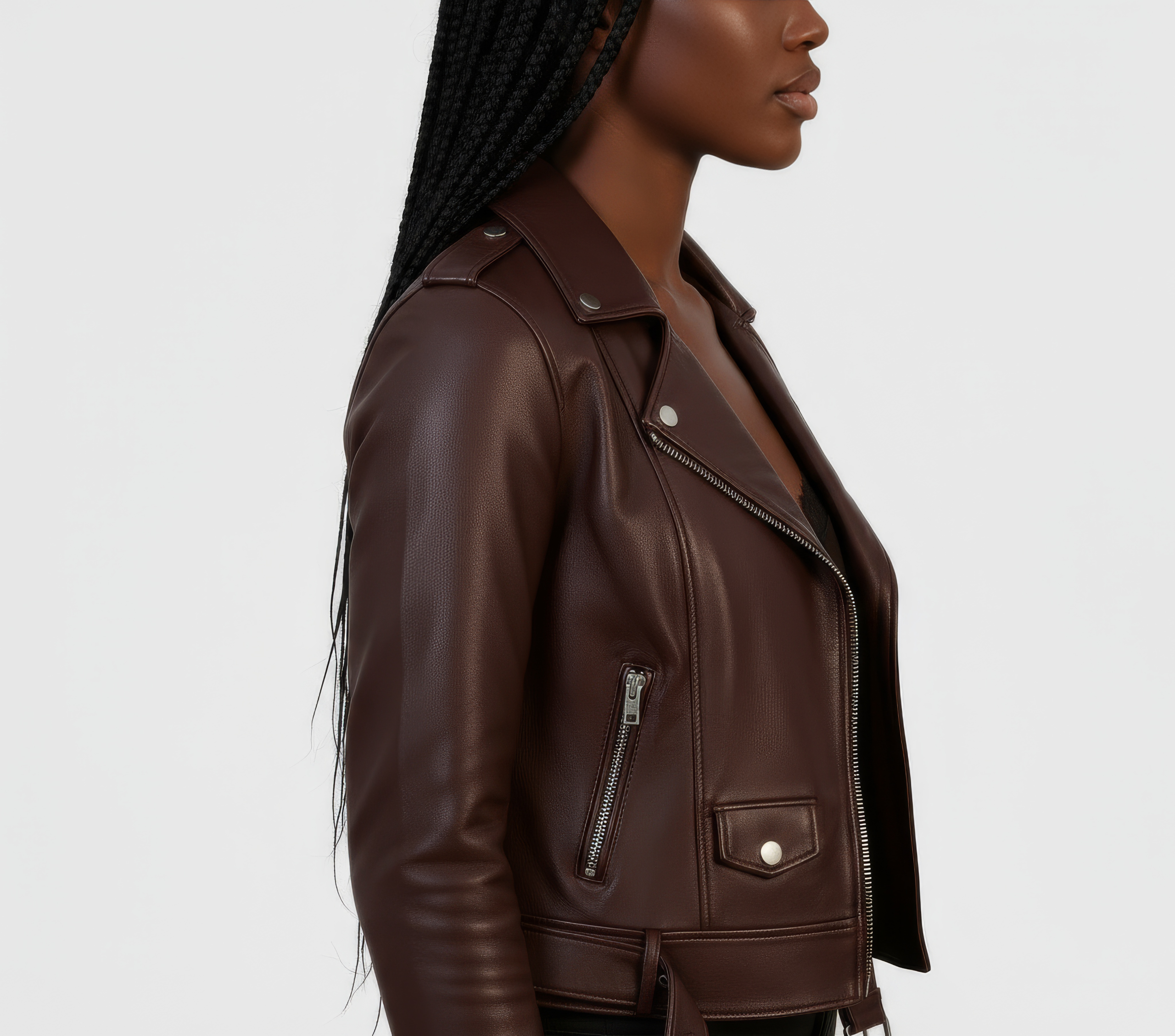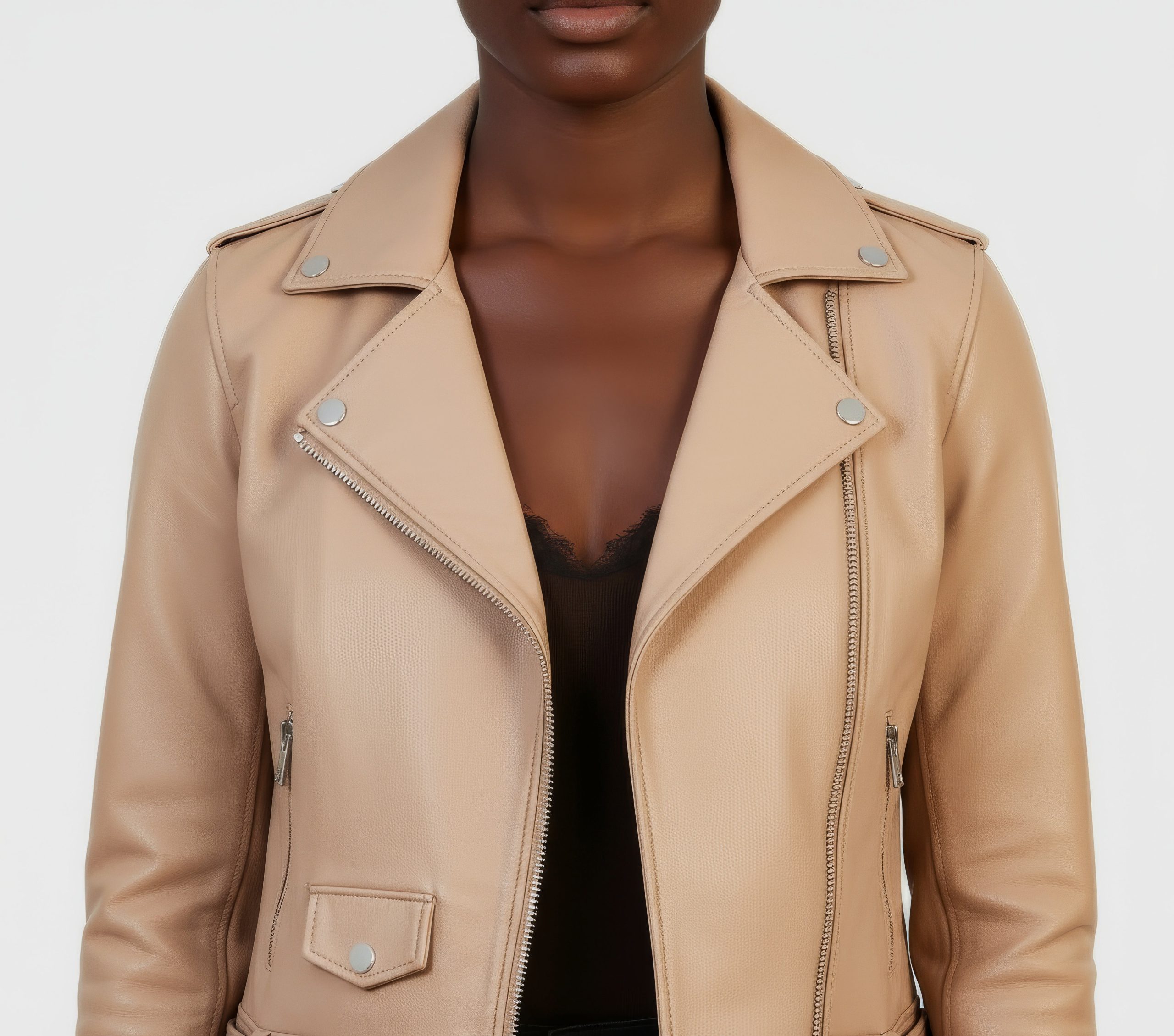 Classic biker silhouette with structured shoulders and seamed panels for shape