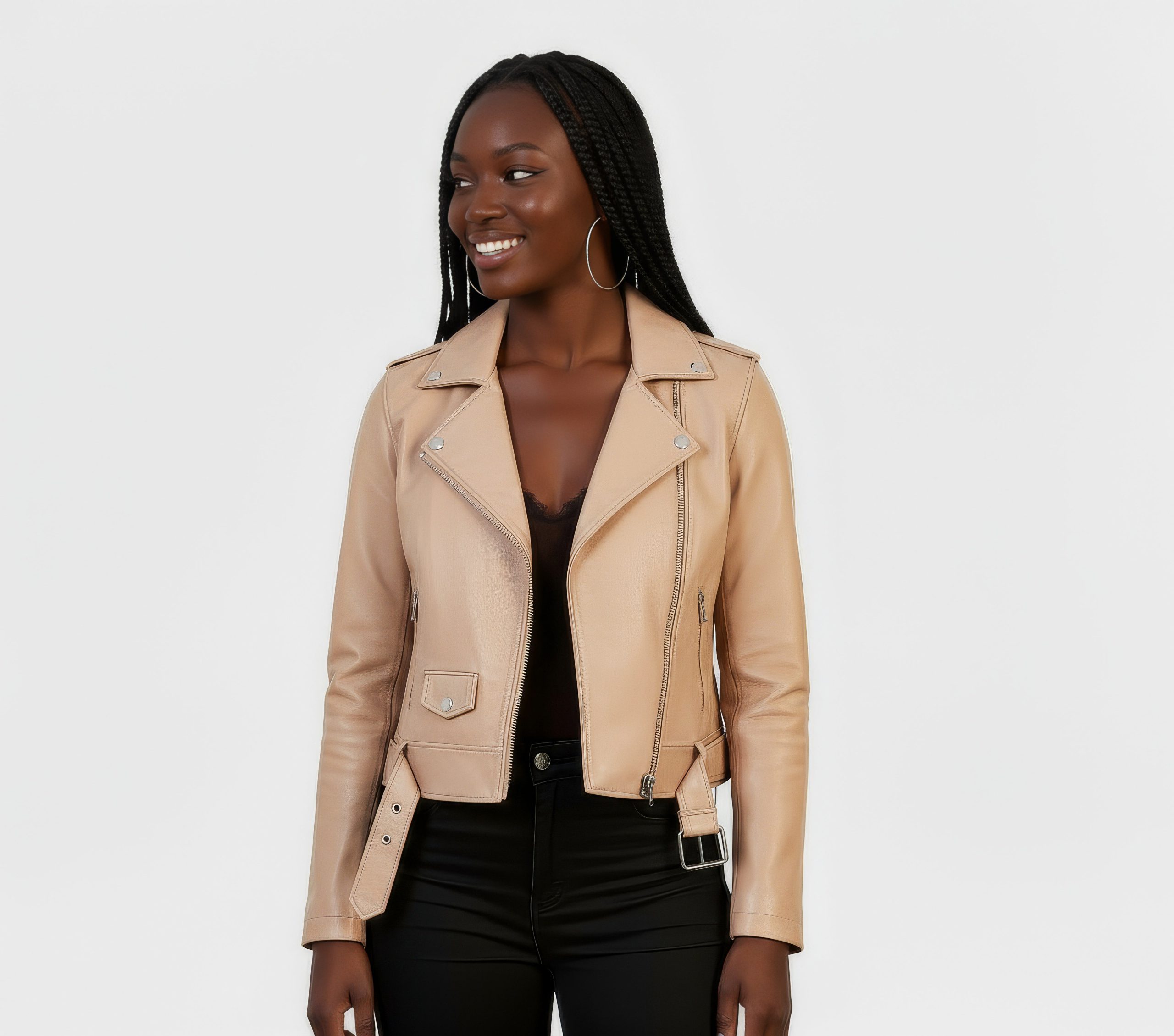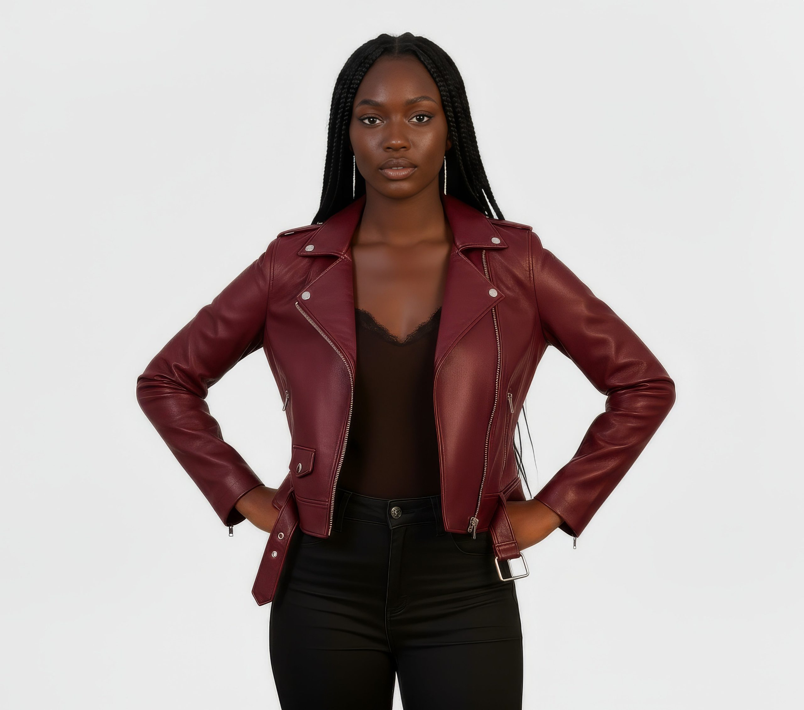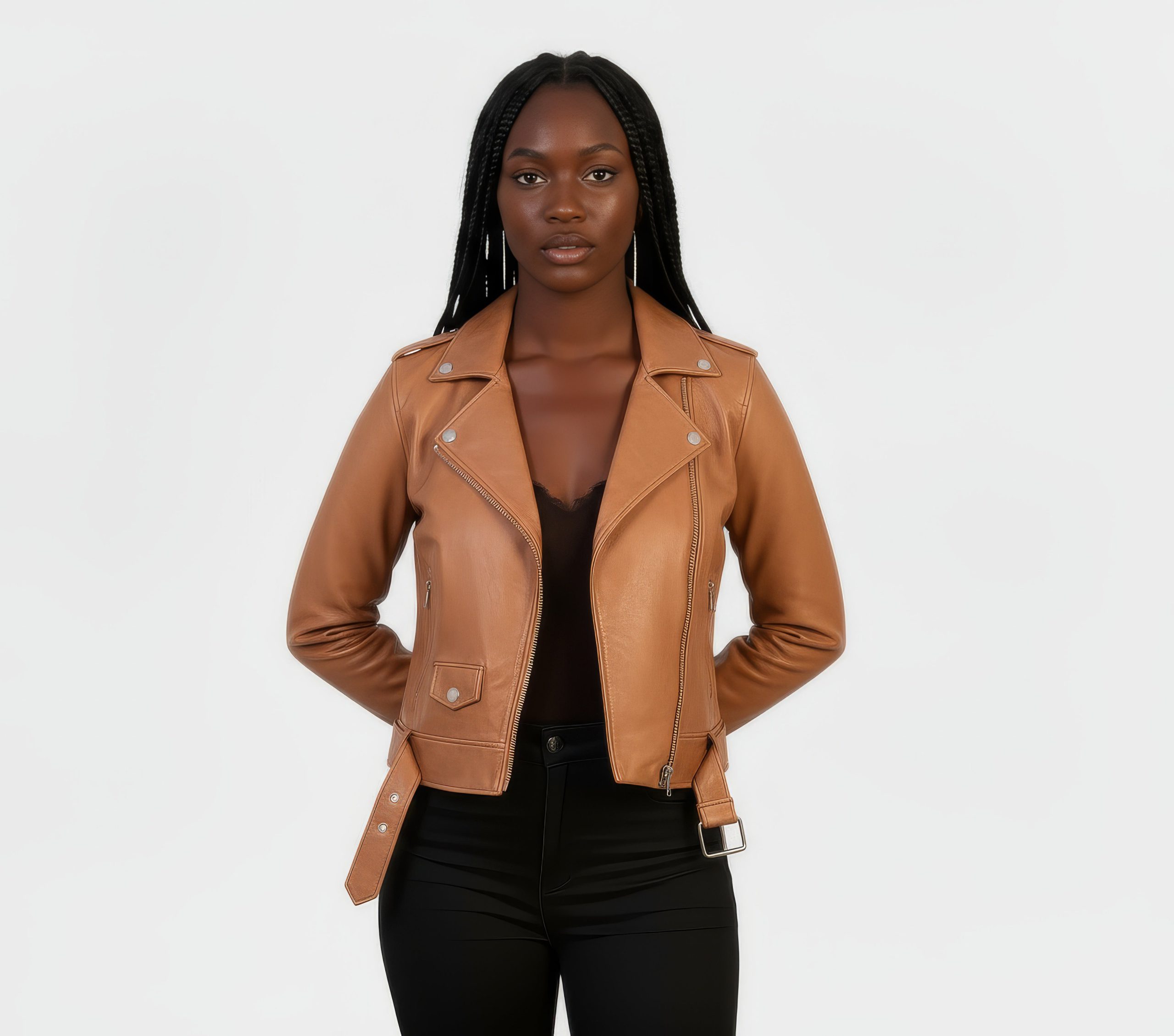 A sharp, waist-defining moto cut with classic notch lapels, an asymmetrical front zip, and a clean belt set at the hem. Tailored from full-grain lambskin (the top 5% of hides worldwide) for a supple hand and long-wear durability.