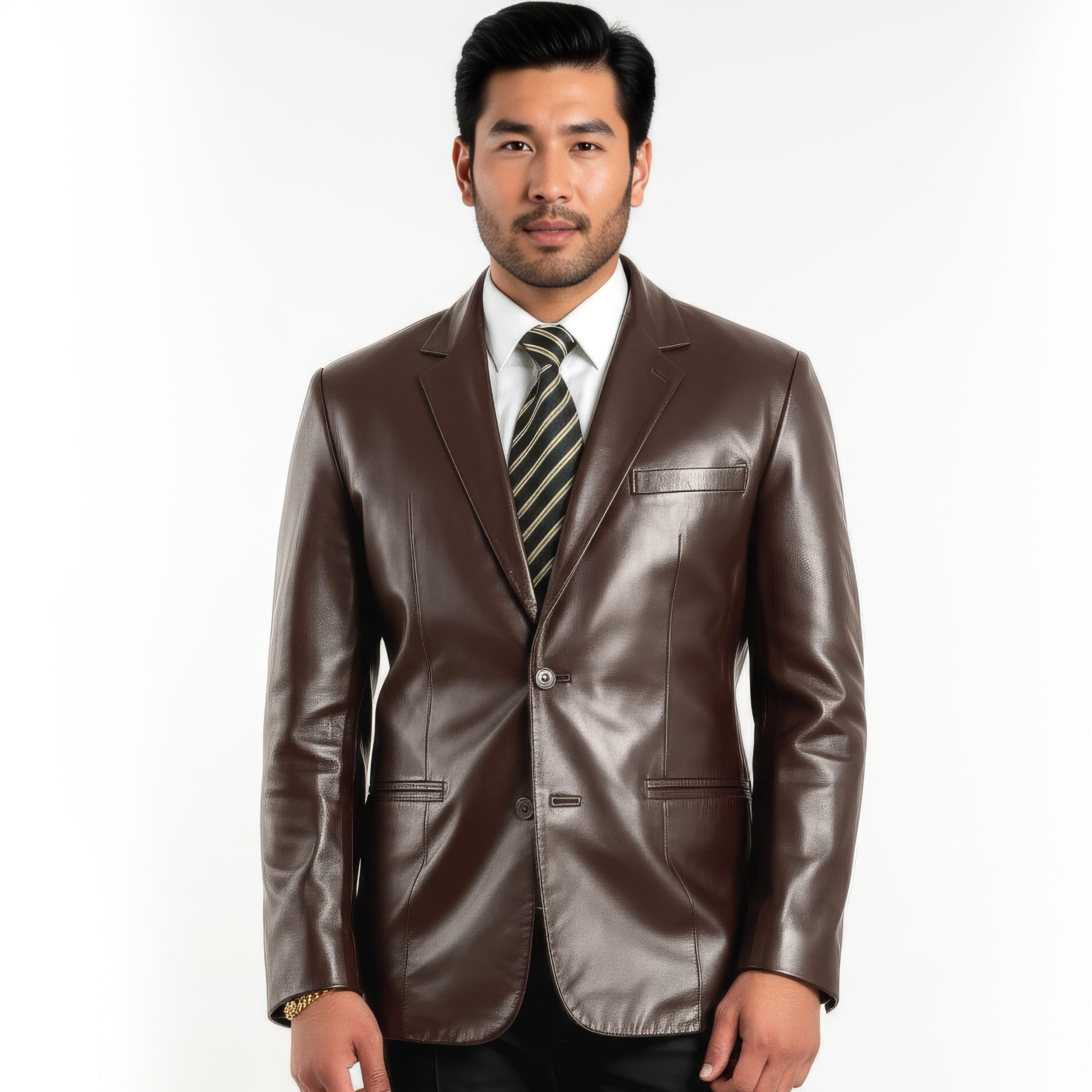 Tailored with razor-clean lines, this two-button blazer is cut to a modern, trim silhouette with sharp notch lapels and restrained detailing, an elevated layer that moves from office to evening with ease. Crafted from full-grain lambskin sourced from the top 5% leather selection worldwide for longevity and a refined hand.