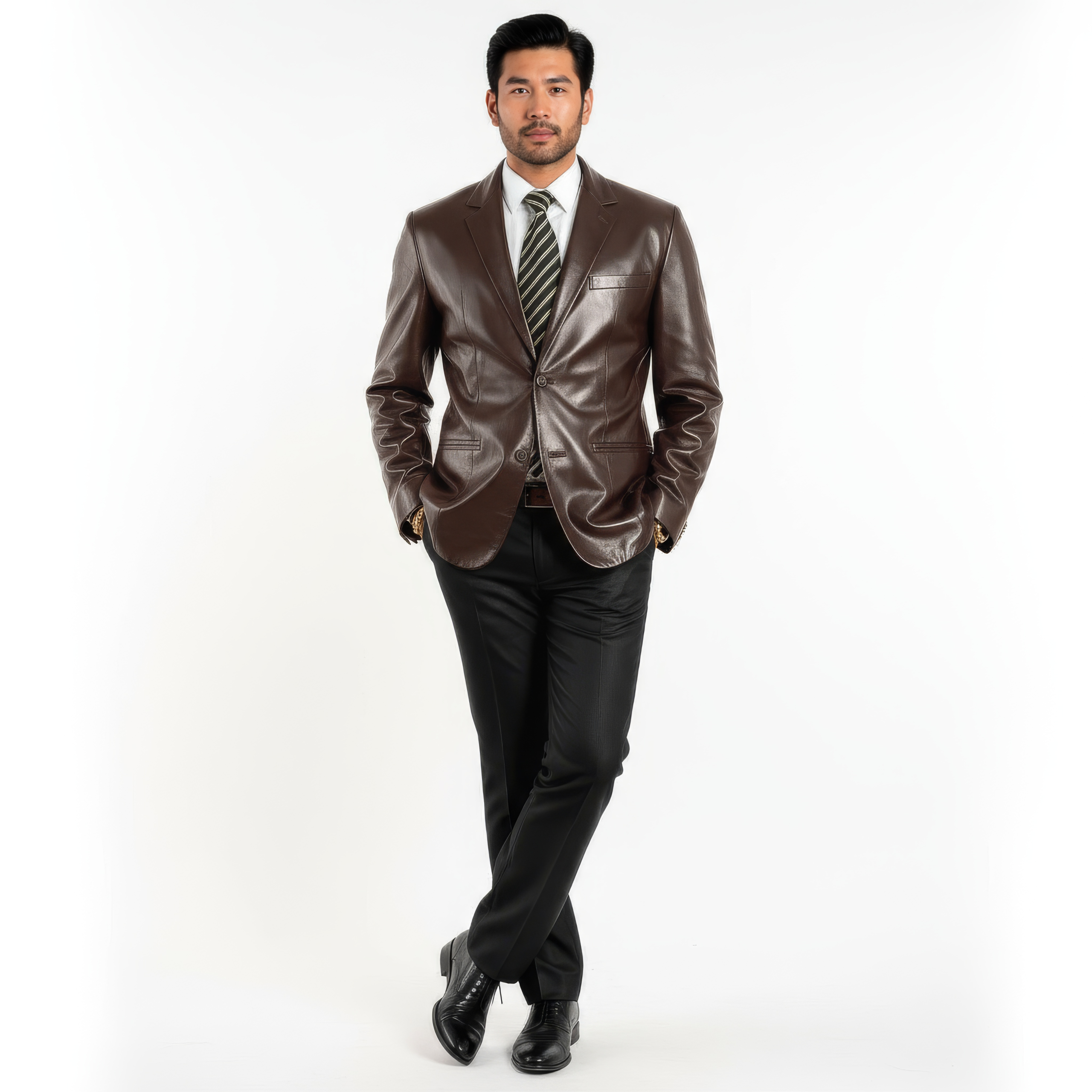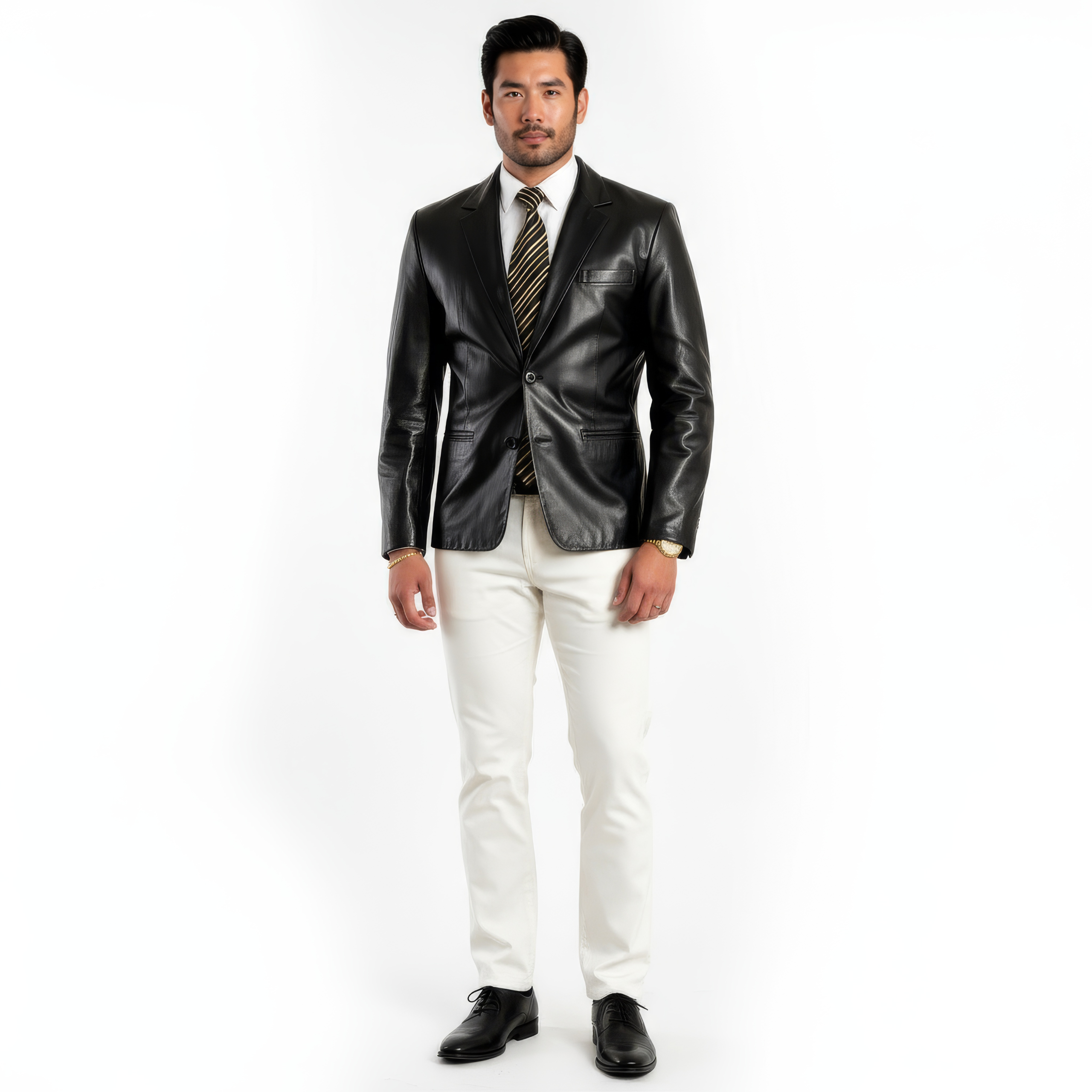 A tailored statement with razor-clean lines, this single-button leather blazer balances structure and ease with sharp peak lapels, lean proportions, and immaculate finishing. Crafted from full-grain leather selected from the top 5% worldwide for longevity and a refined hand.