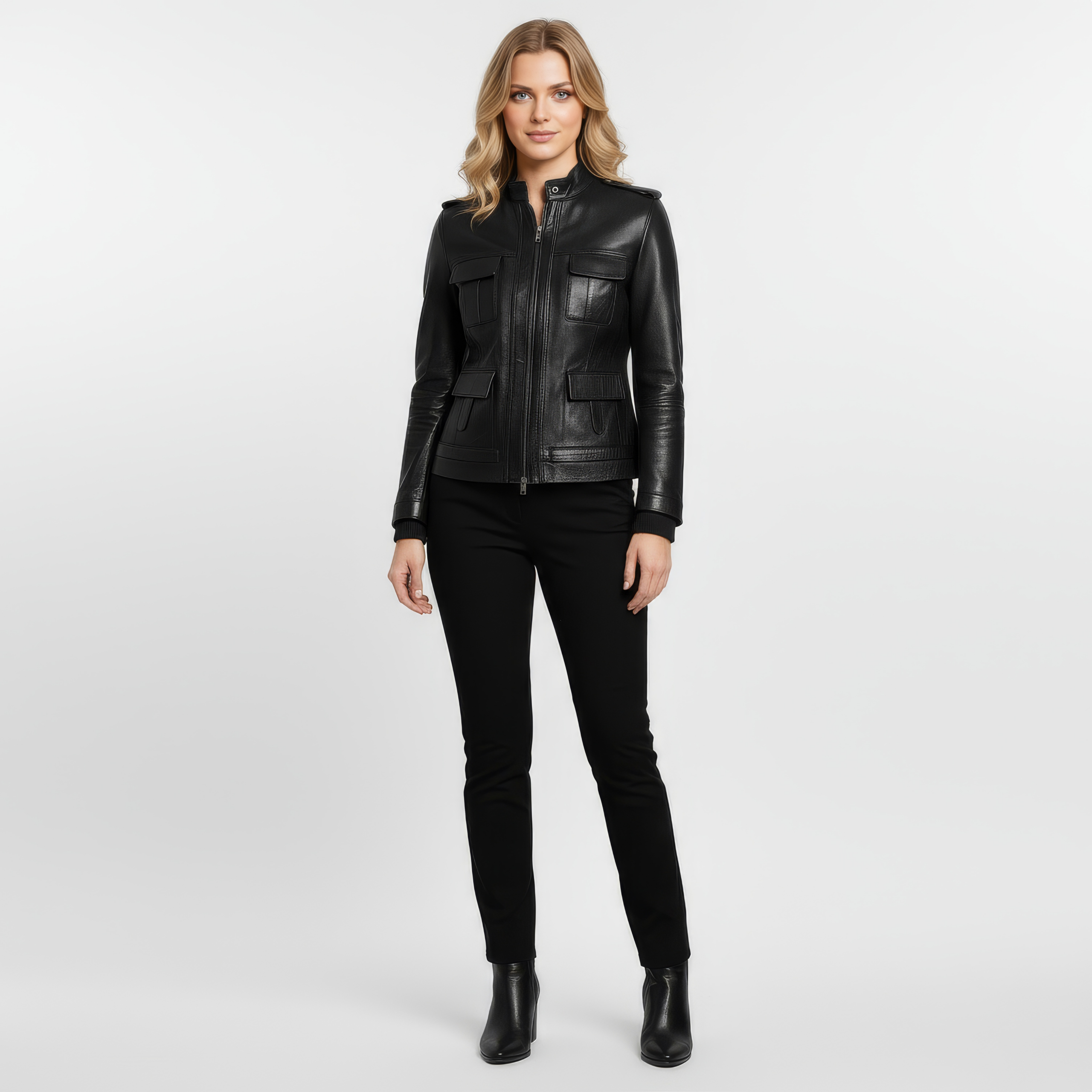 Women’s Real Leather Cafe Racer Jacket – Lauren