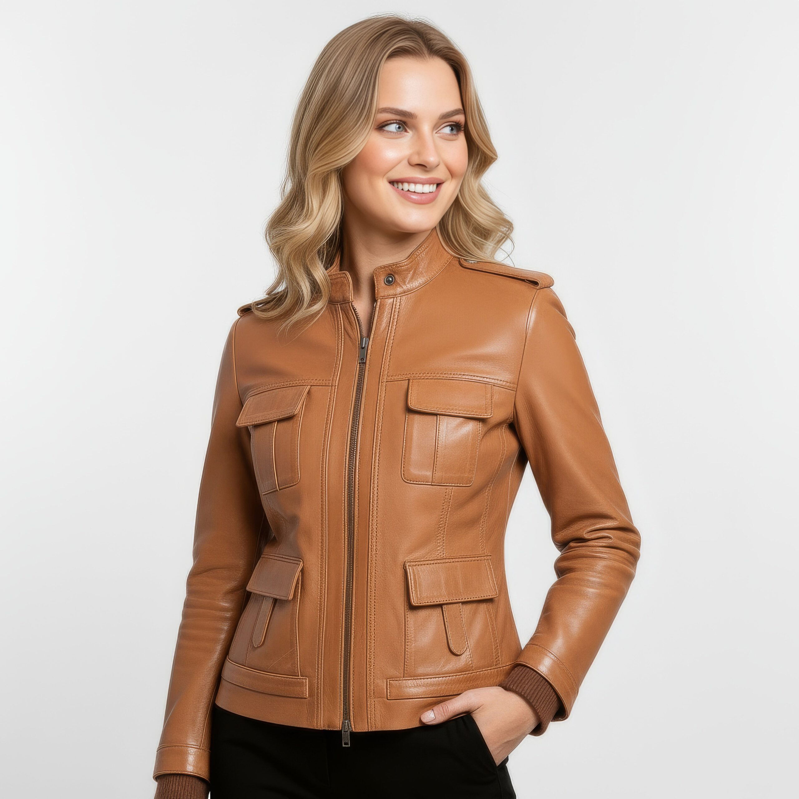 Real Leather Cafe Racer Jacket for Women – Lauren