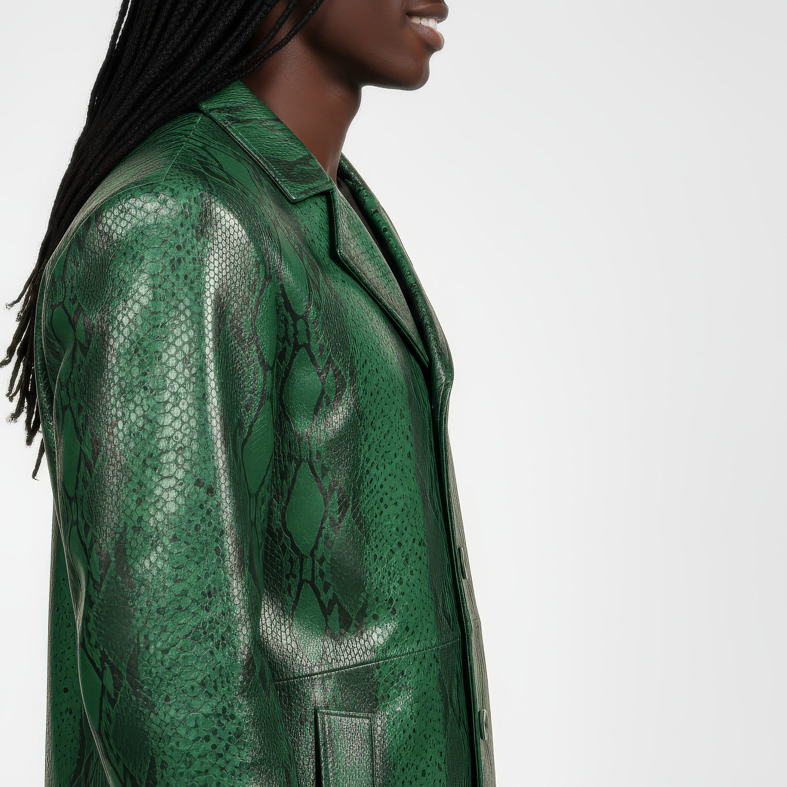 • Snake-embossed leather (cow) – white, and green.