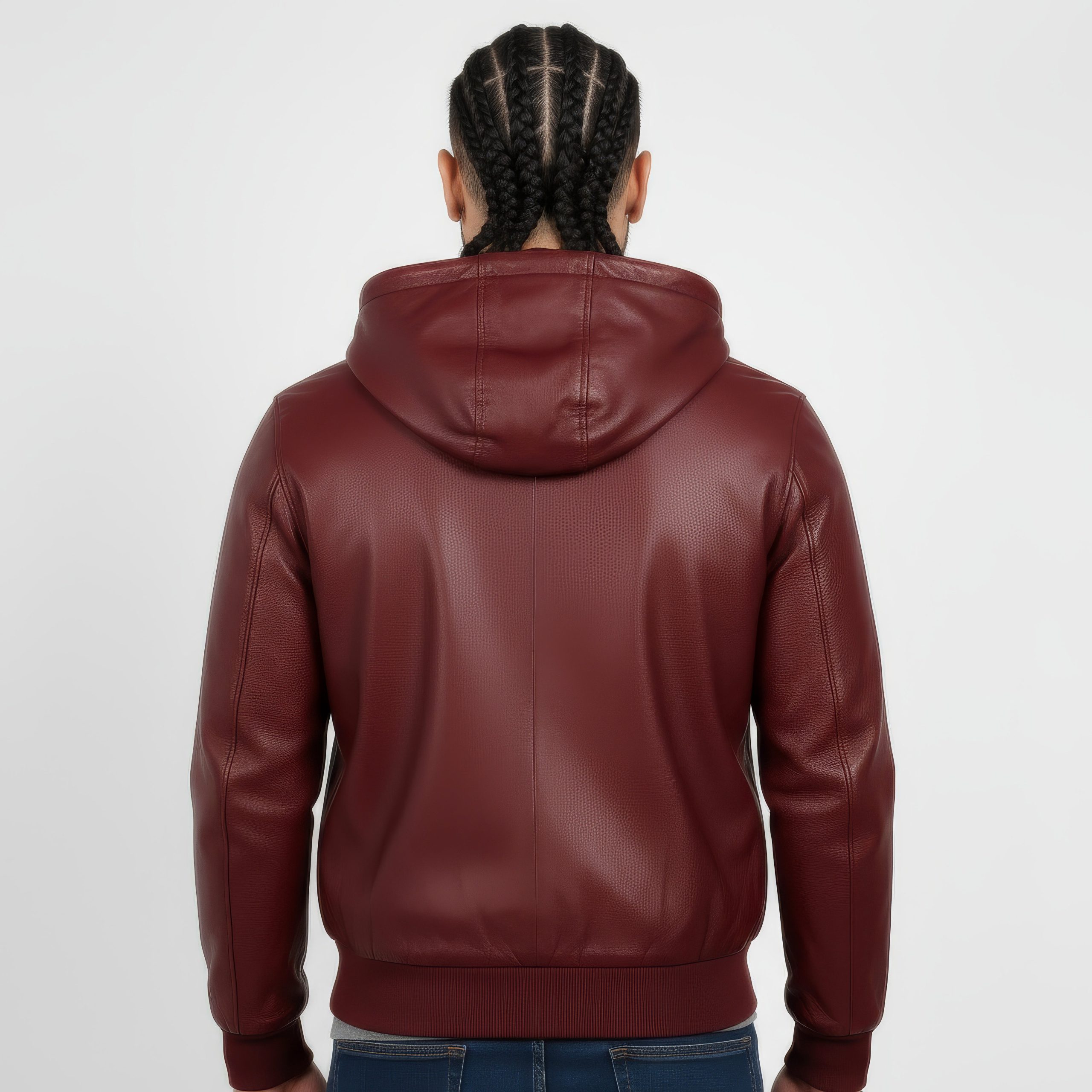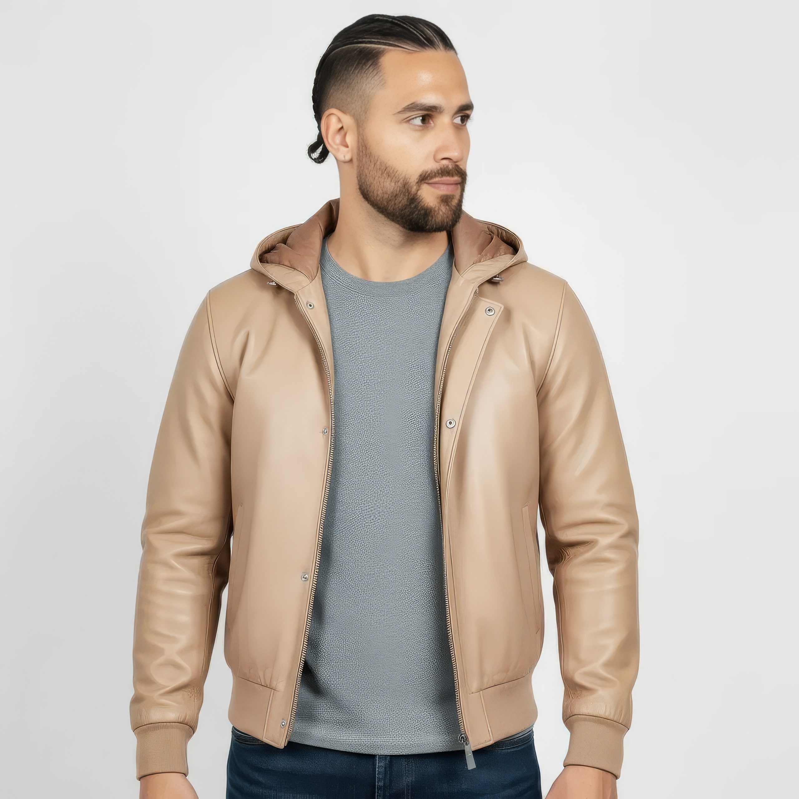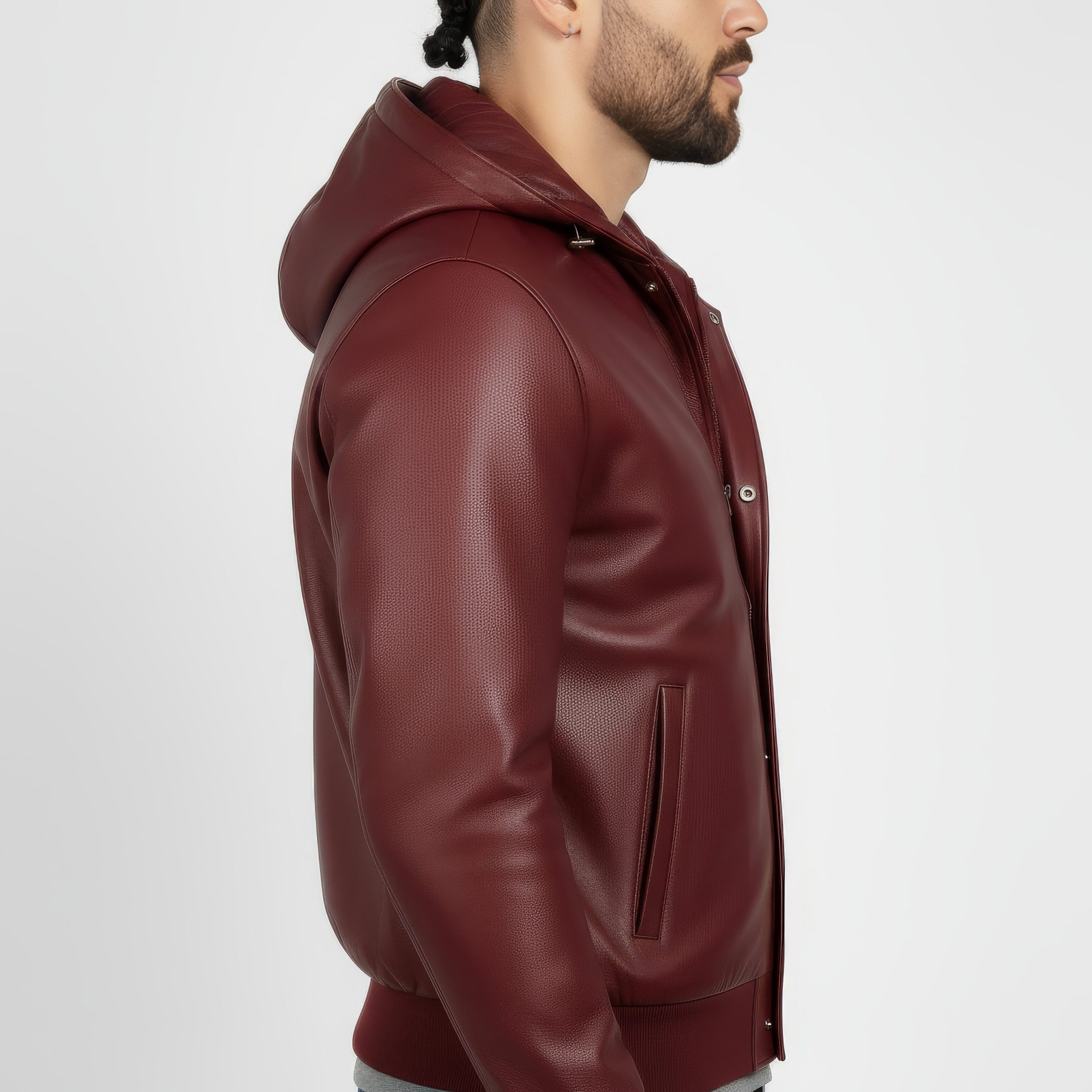 Real Leather Hooded Jacket for Men