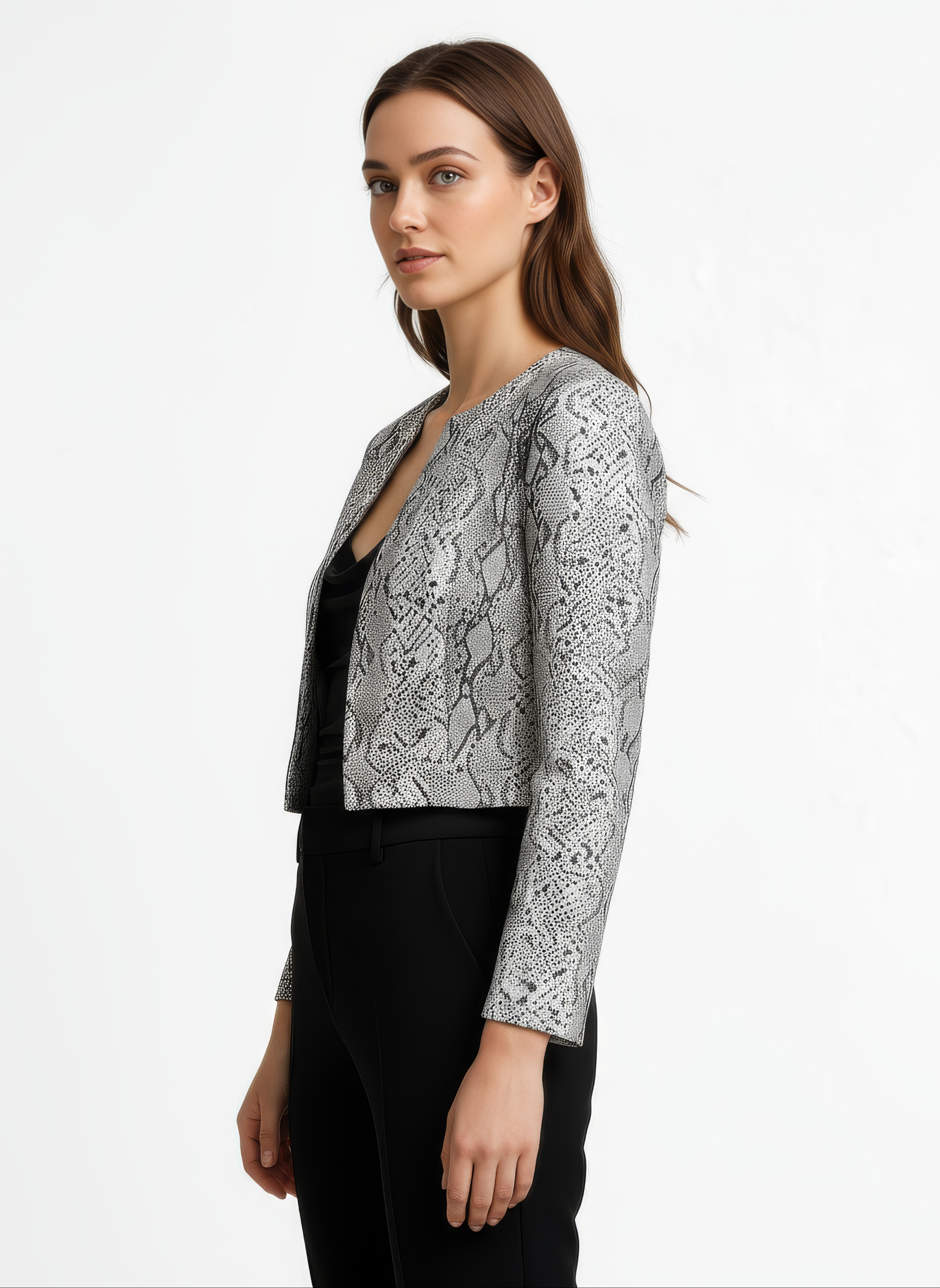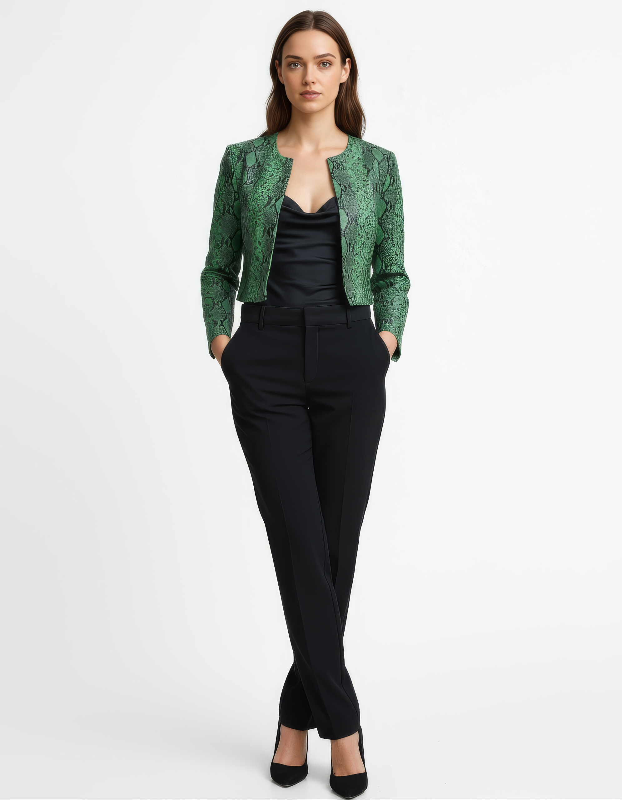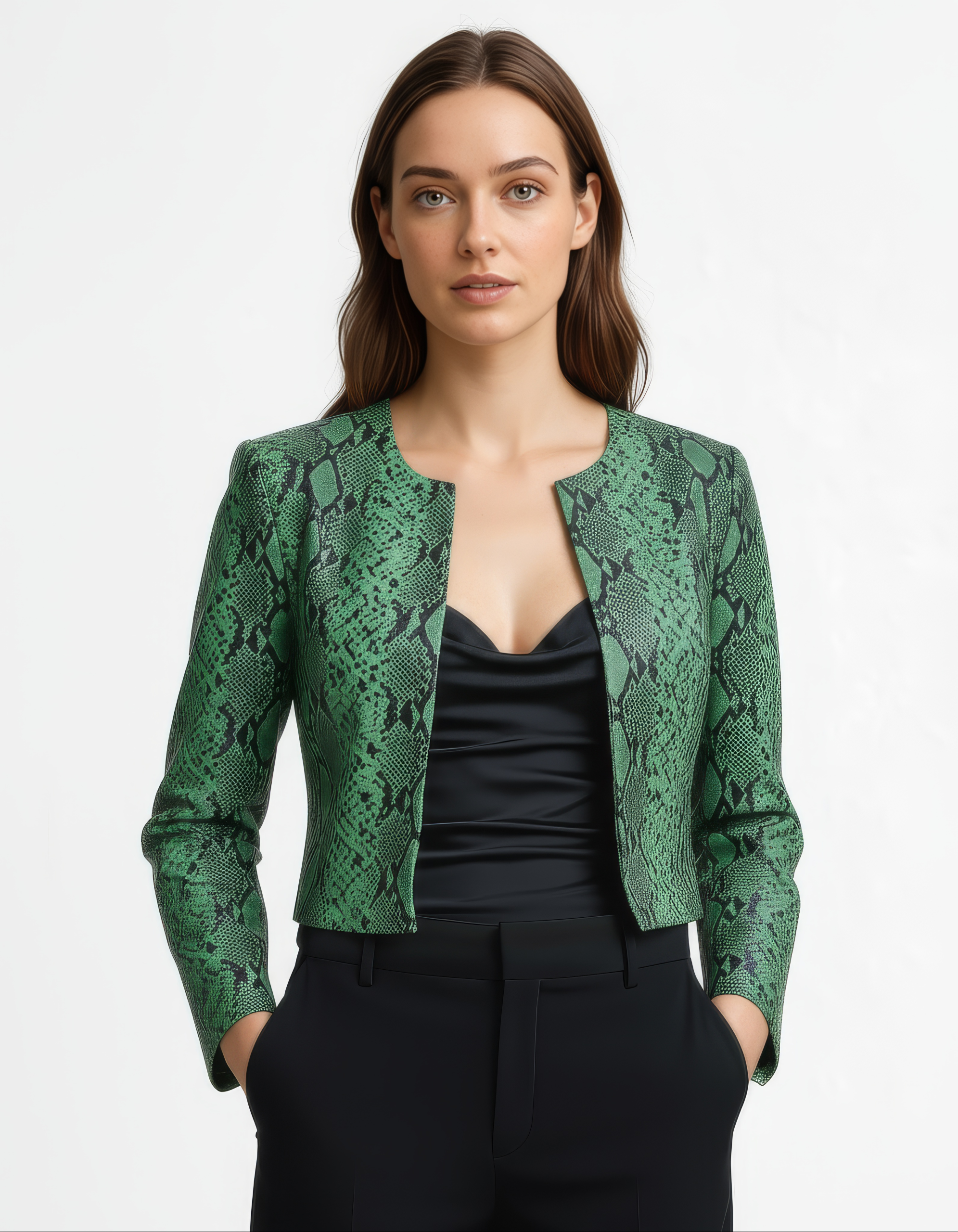 Cropped, high-hip length to sharpen the waist and sit neatly over dresses or high-rise trousers