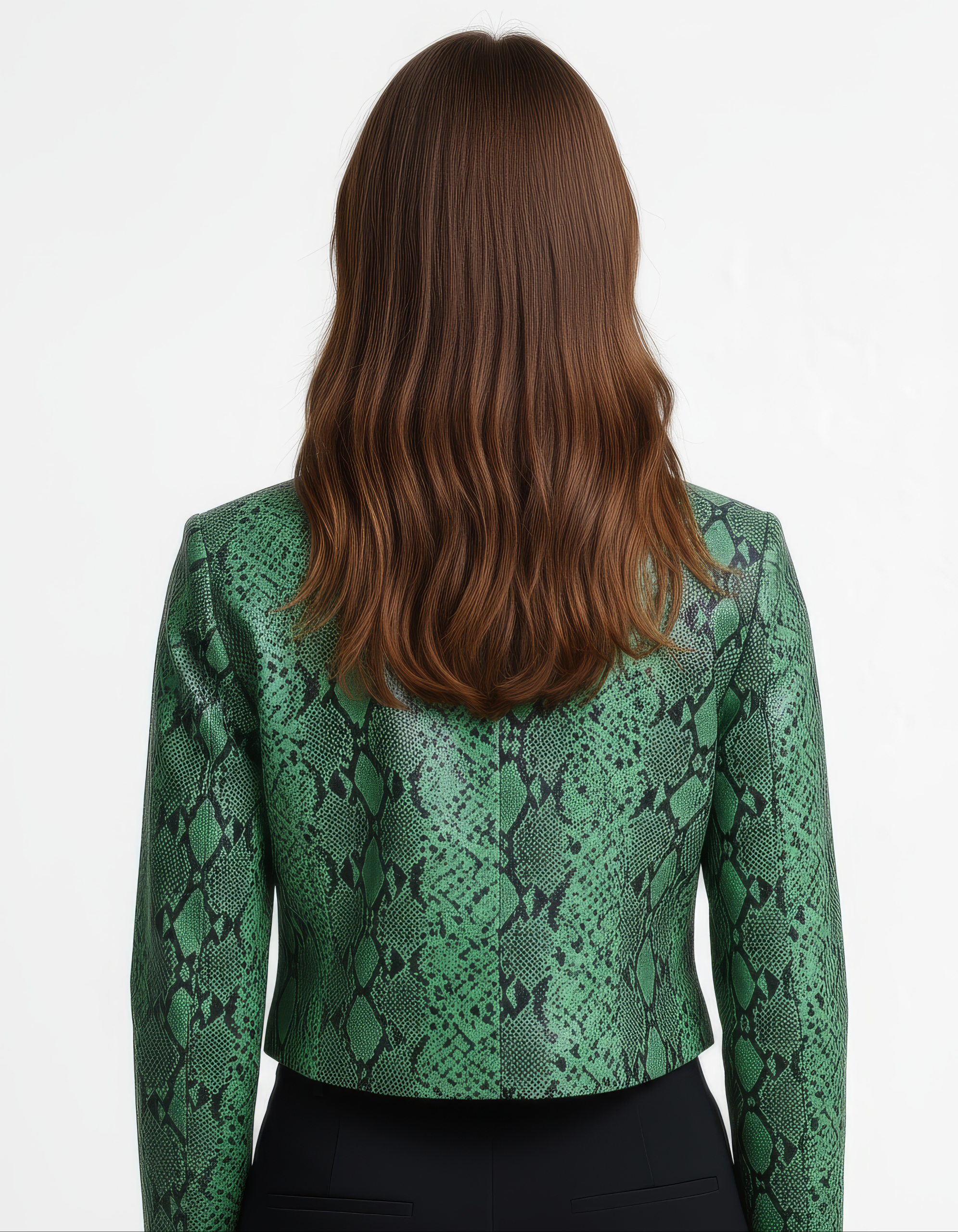 Snake-embossed leather on cowhide (full-grain): slightly more structured with a crisp, scaled emboss for statement texture.