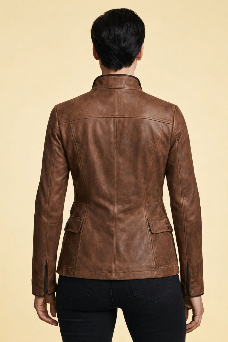 Brown Rider Faux Leather Jacket For Women