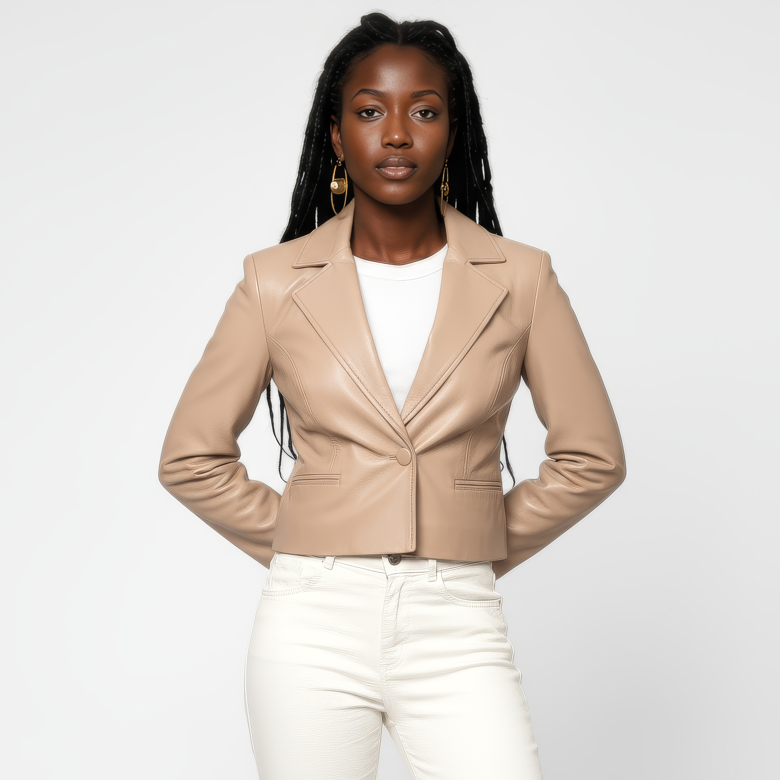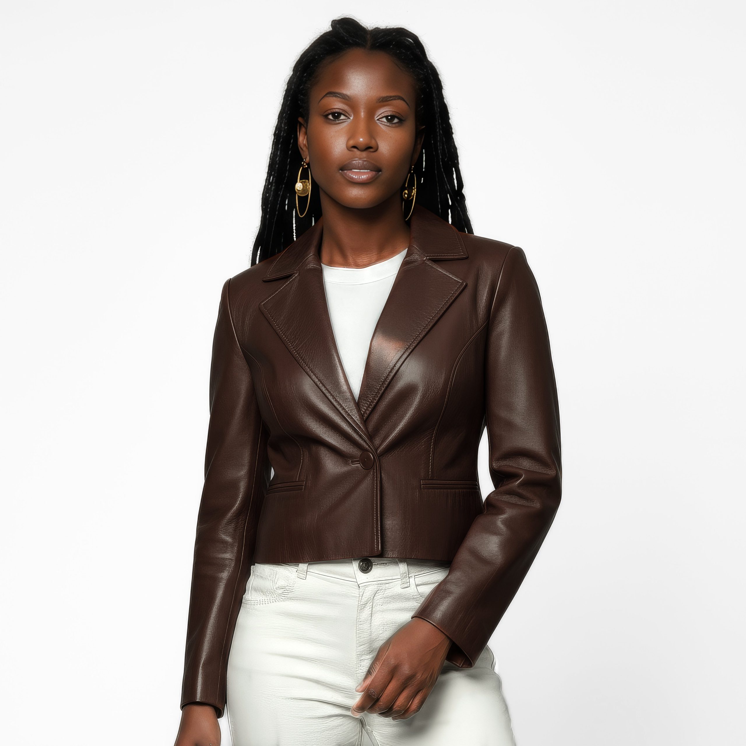 Cropped Real Leather Blazer for Women