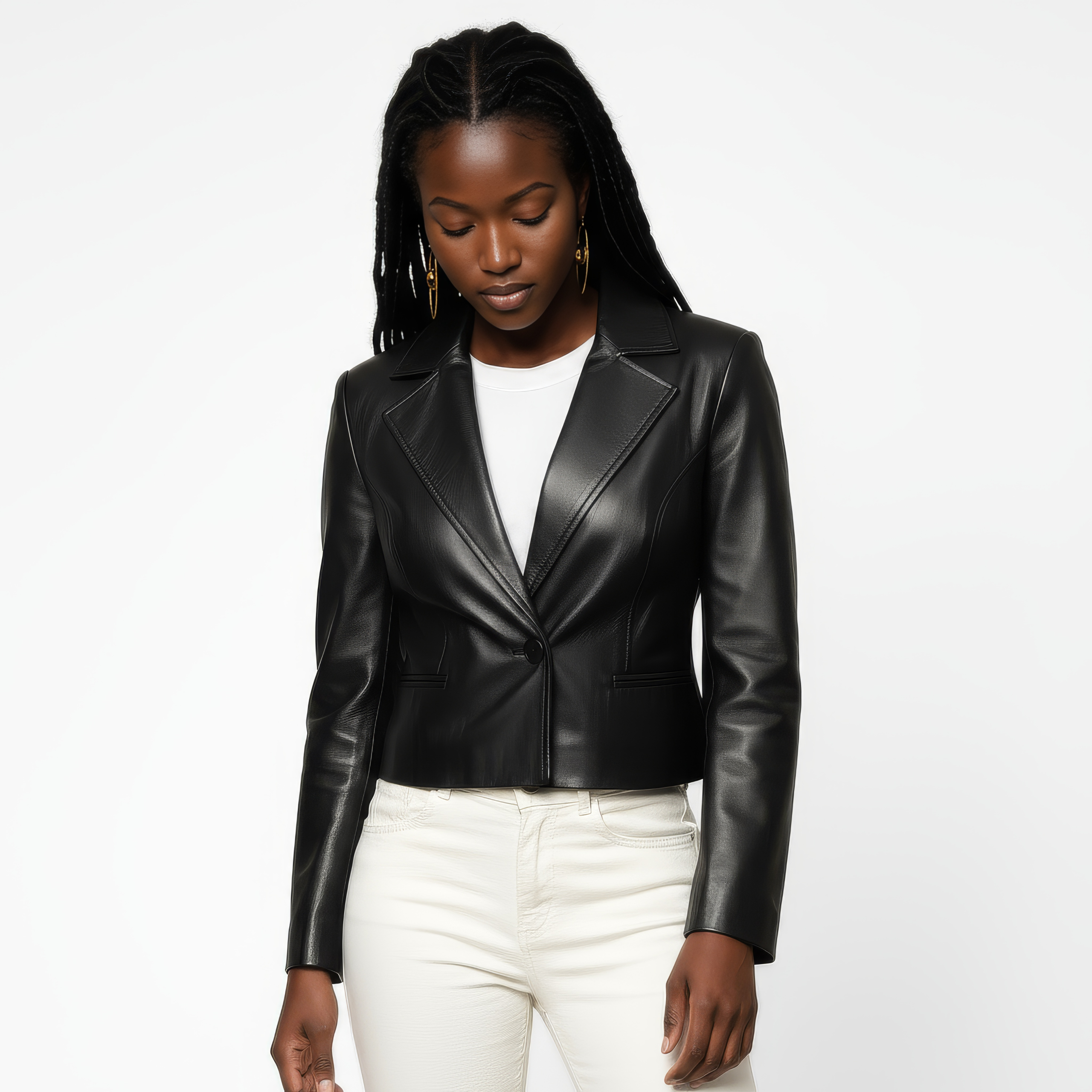 Cropped Real Leather Blazer for Women Original price was: $ 500.Current price is: $ 220.