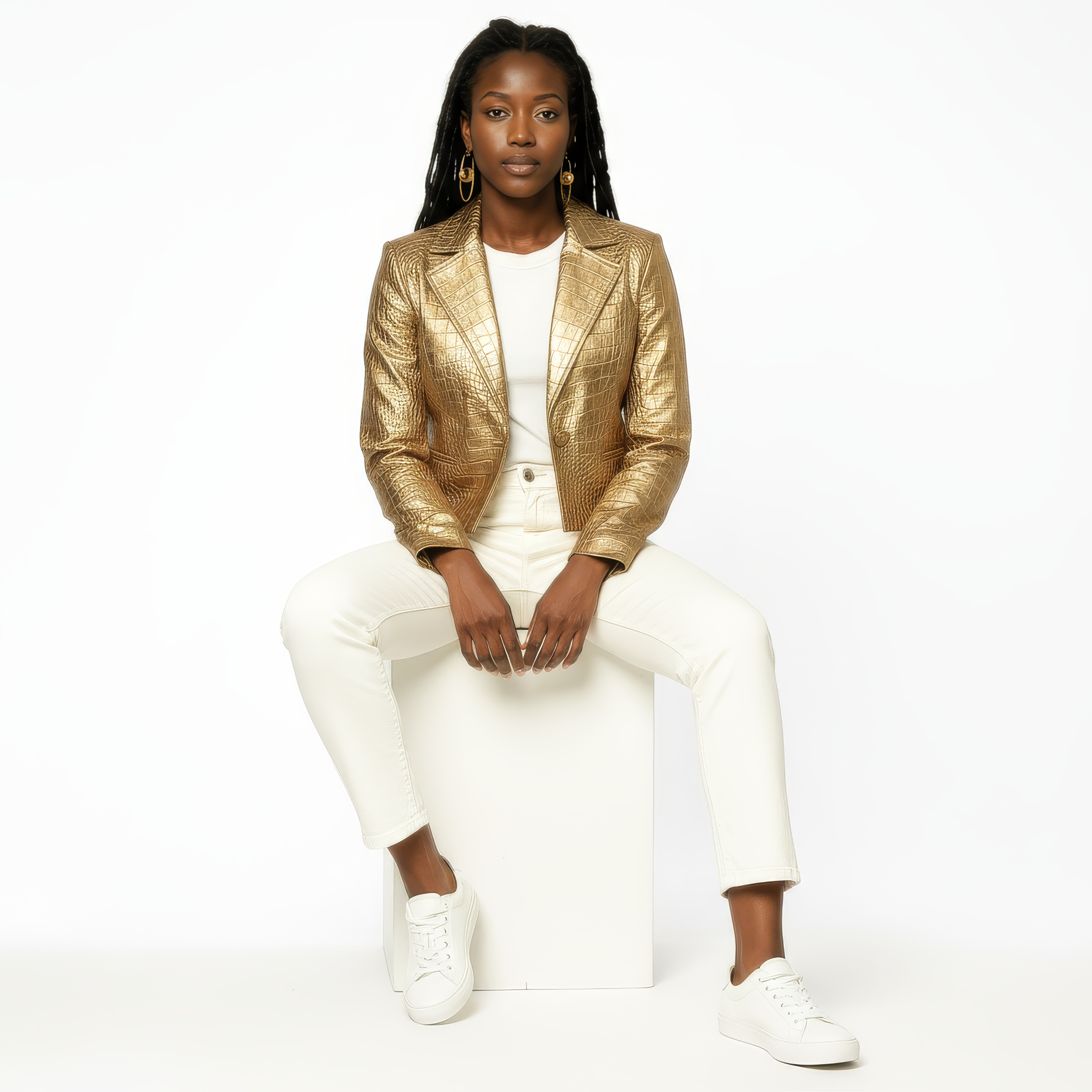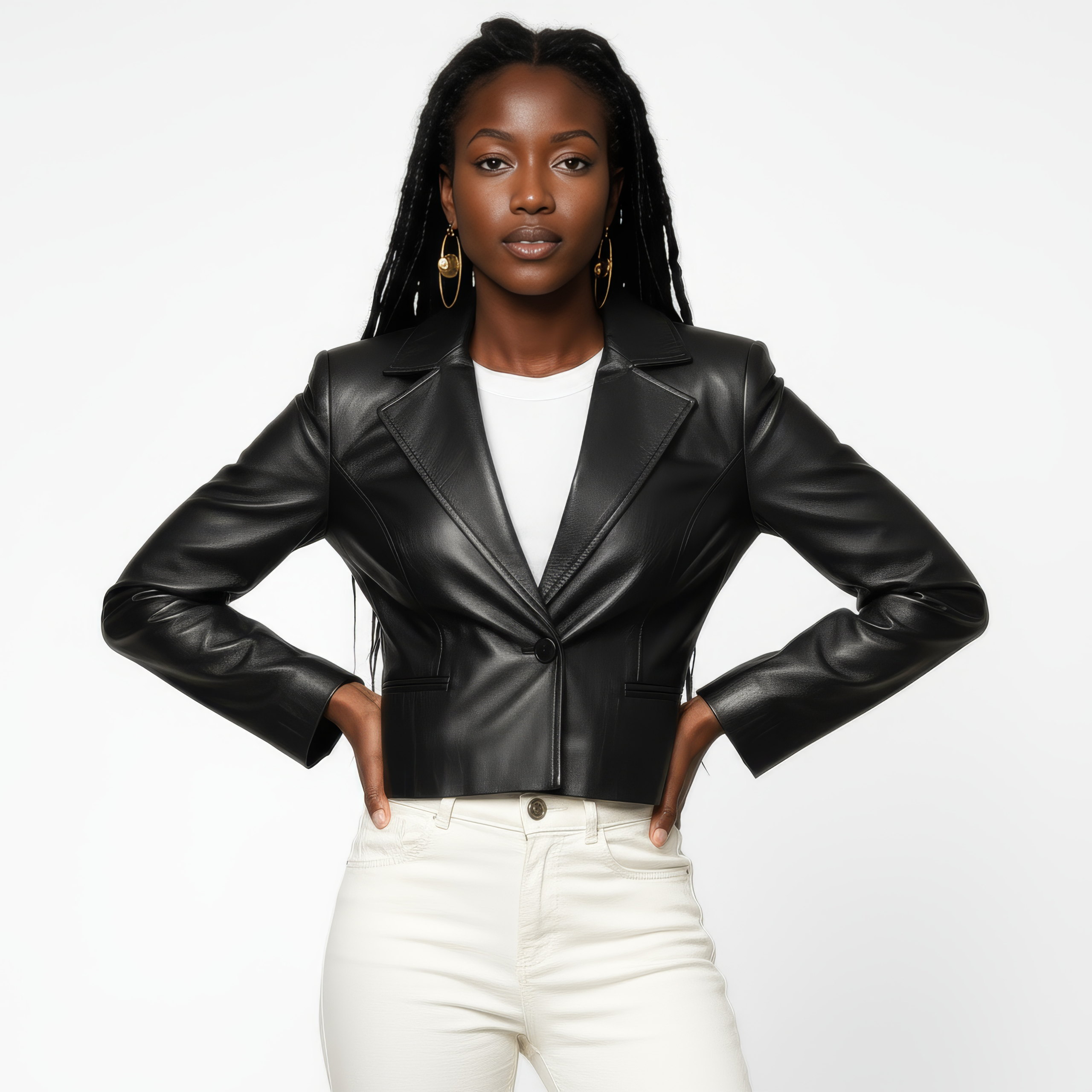 Tailored with precision, this cropped leather blazer designed by Viola Belotti, is crafted from full-grain leather selected from the top 5% worldwide, delivering a polished, sculpted silhouette that moves effortlessly from denim days to evening dress.