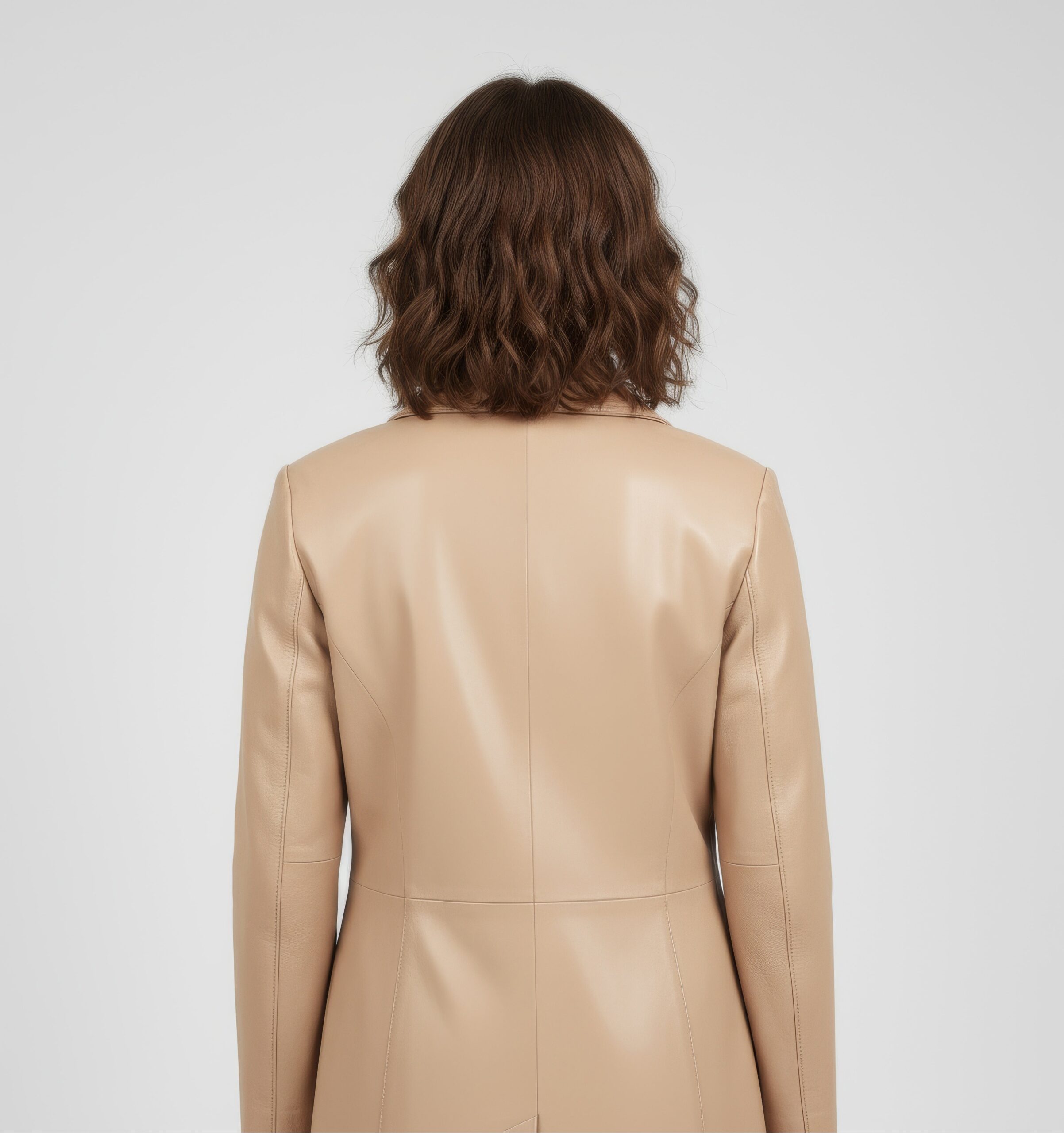 A refined, mid-length leather coat that balances timeless tailoring with subtle modern lines. Designed by Lidiane Ruiz, it’s cut to skim the frame and layer effortlessly from weekdays to weekends.