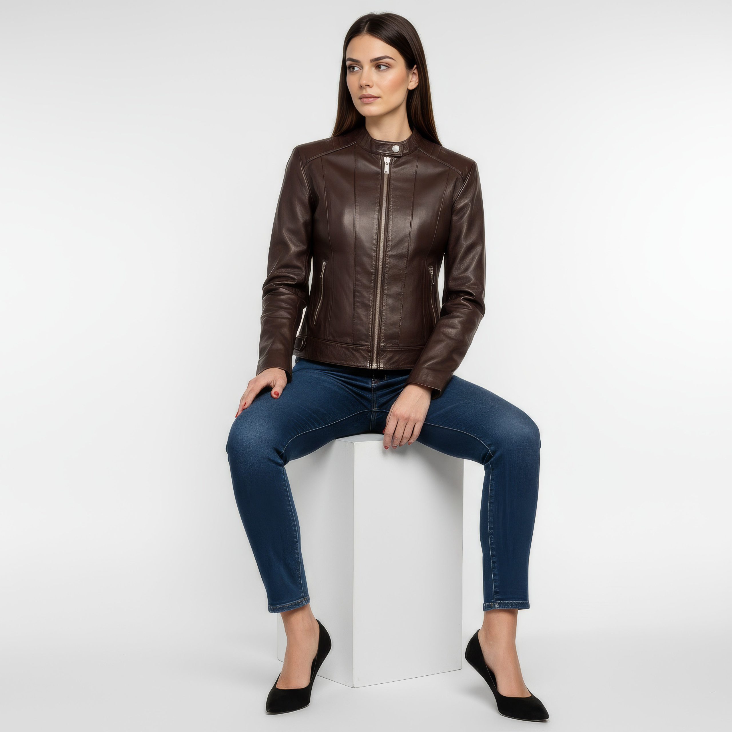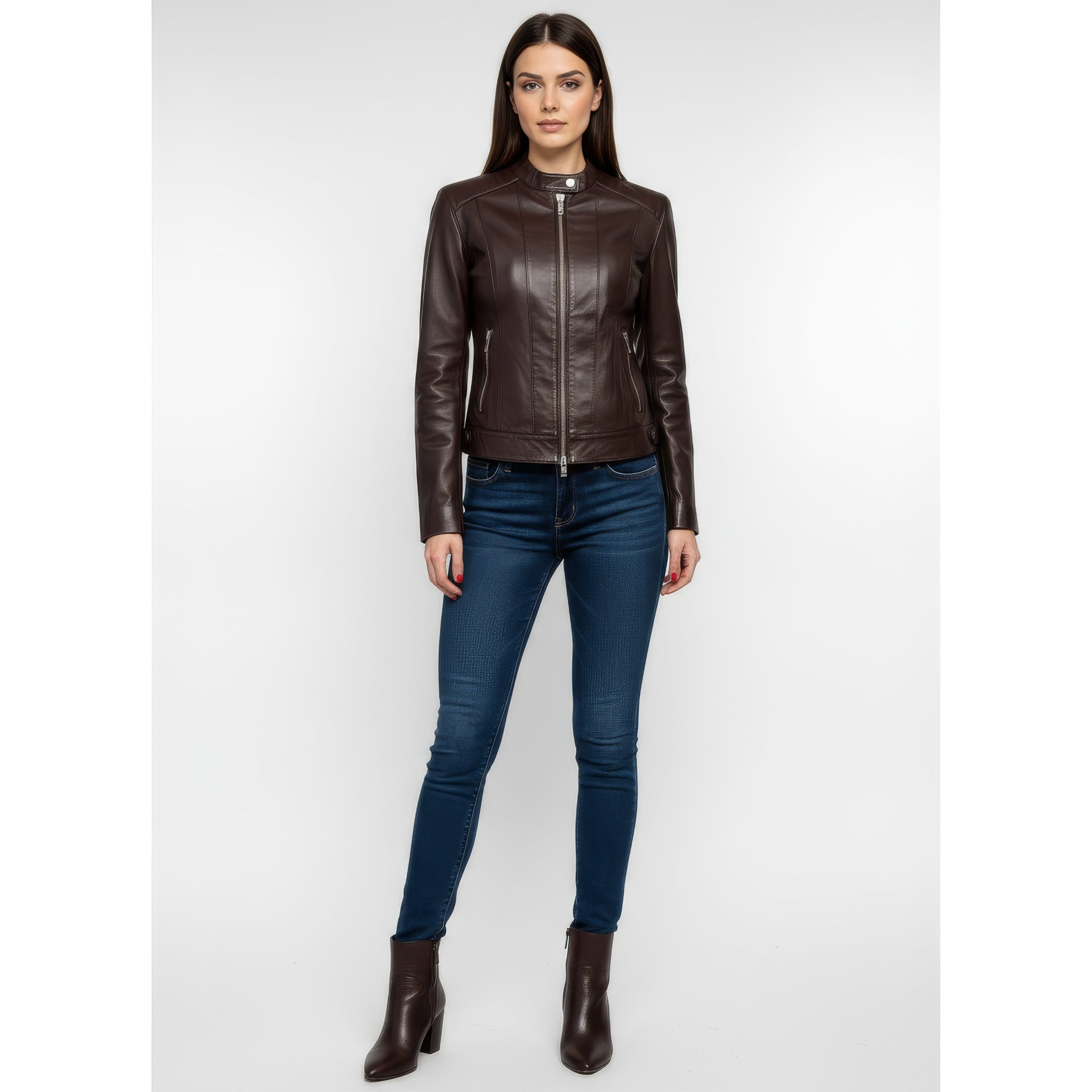 Women’s Stand-Collar Lambskin Jacket