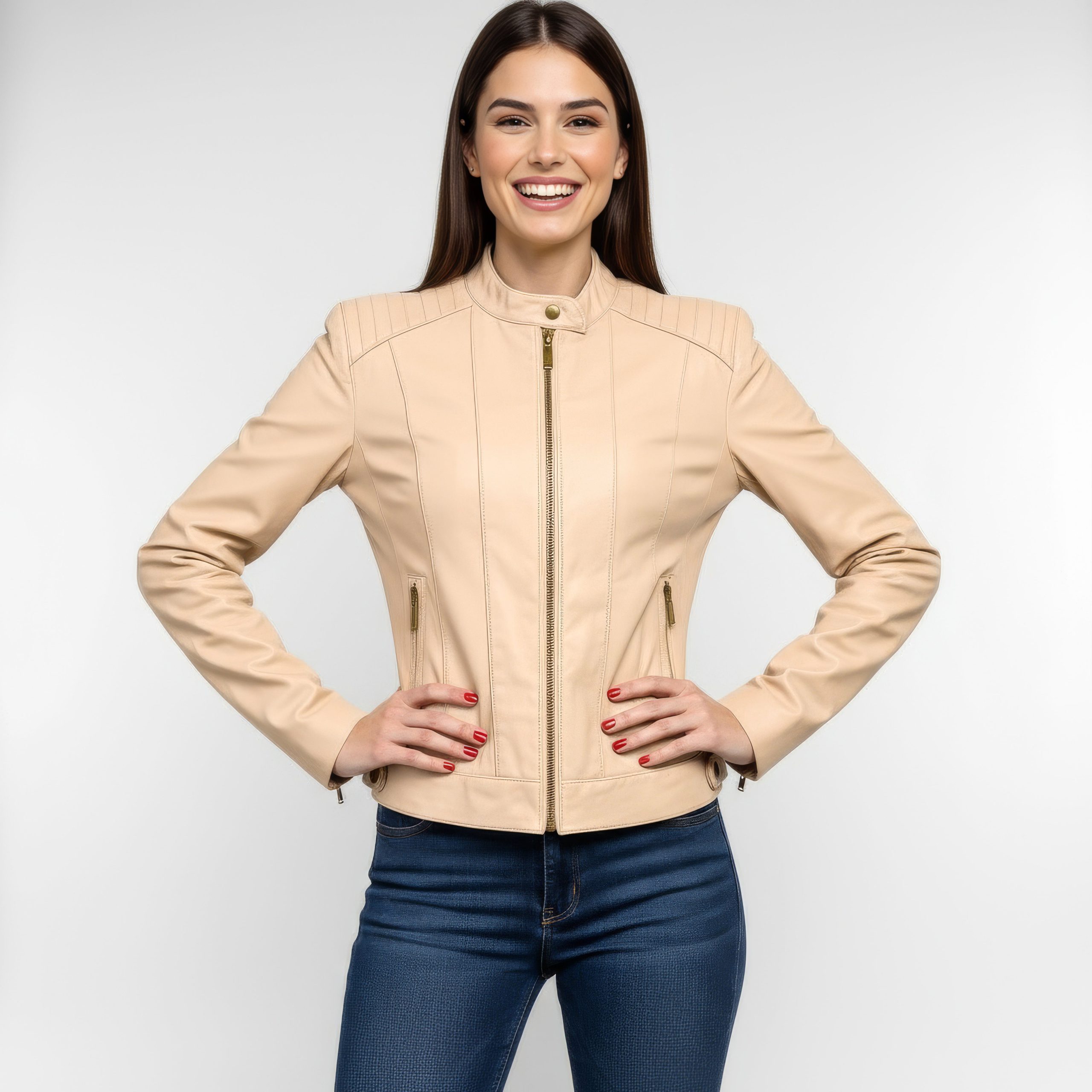 Real Leather Moto Jacket for Women