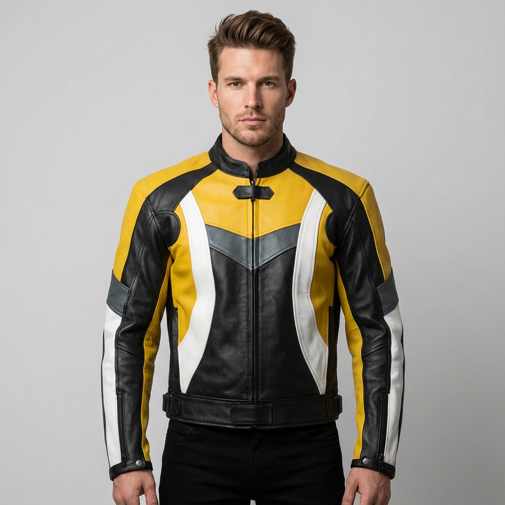 Upgrade your riding gear with this professional biker leather jacket by American Leather Jackets, designed for riders who demand style, safety, and performance. Featuring a bold and eye-catching yellow & black color combination, this jacket delivers a sporty racing look that stands out on the road and track.