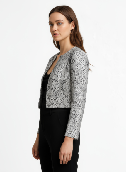 Tailored with precision, this cropped leather blazer designed by Viola Belotti, is crafted from full-grain leather selected from the top 5% worldwide, delivering a polished, sculpted silhouette that moves effortlessly from denim days to evening dress.