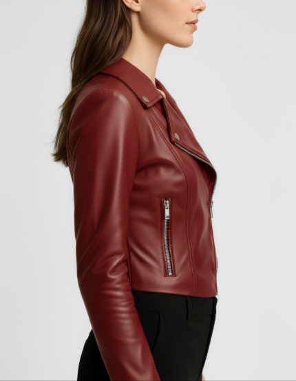Its classic biker silhouette makes it perfect for both casual outings and evening wear, while the smooth leather finish adds a sophisticated edge. Designed to combine fashion and function, this jacket is ideal for women who love standout biker style with everyday versatility.