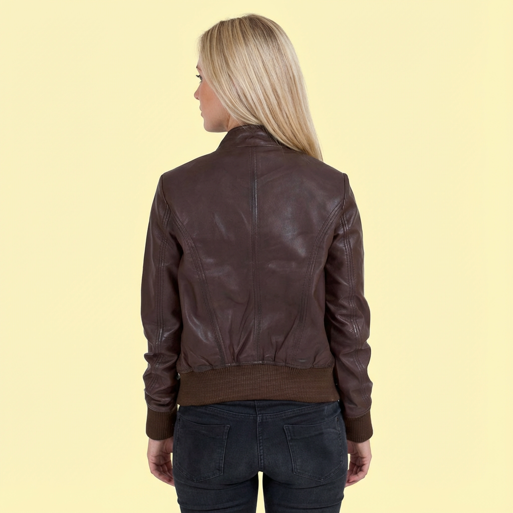 The Women’s Brown Leather Bomber Jacket is a dashing and elegant outerwear piece designed for stylish women by American Leather. Featuring a timeless bomber silhouette with refined detailing, this jacket delivers a perfect balance of sophistication and everyday versatility.