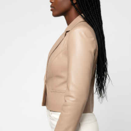 Real Leather Cropped Blazer for Women